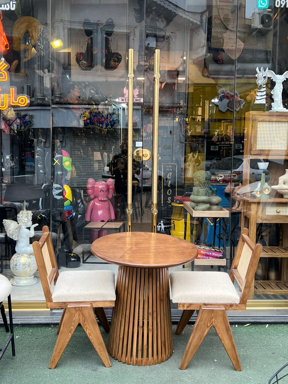 میز ناهارخوری چوبی دونفره پایه شیاردار